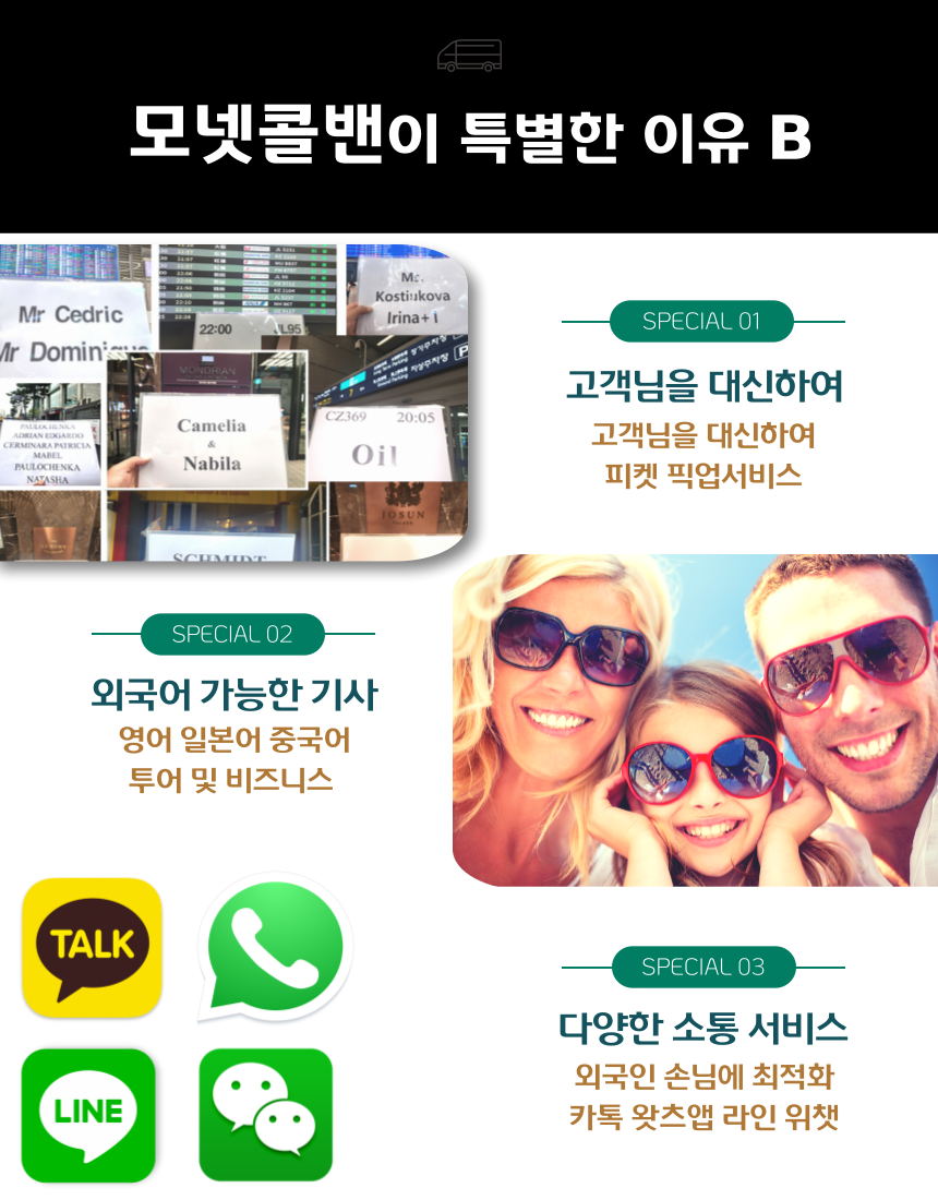 저희 모넷콜밴은 콜밴운전기사의 친절한 서비스와 더불어 편리한공항이동을 제공하여 고객님께 최고의 만족을 드립니다.