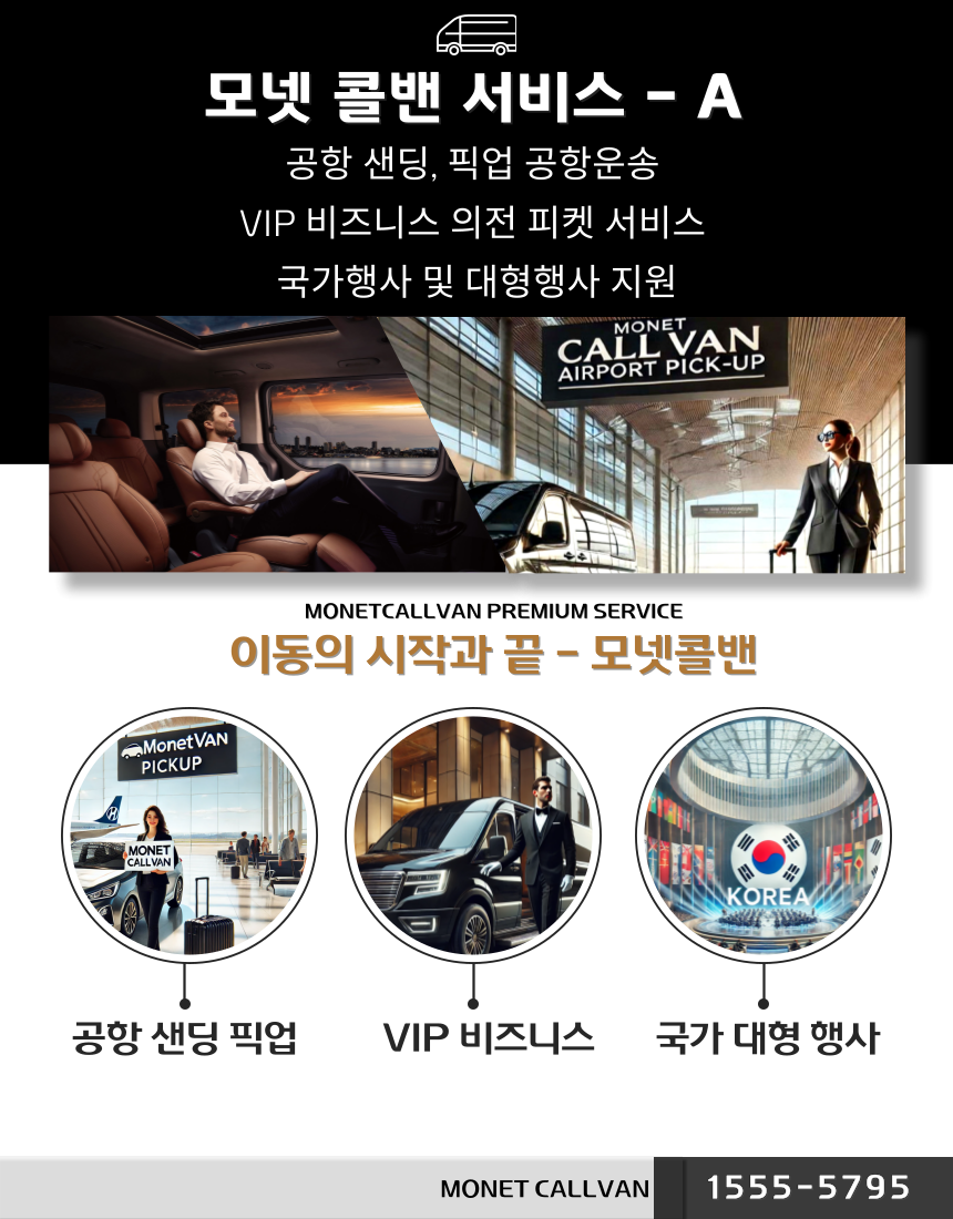 저희 모넷콜밴은 공항픽업, 공항샌딩서비스, 비즈니스콜밴 등 맞춤형 서비스를 제공하며, 사전 콜밴예약을 통해 빠르고 안전한 공항 이동을 약속합니다.
